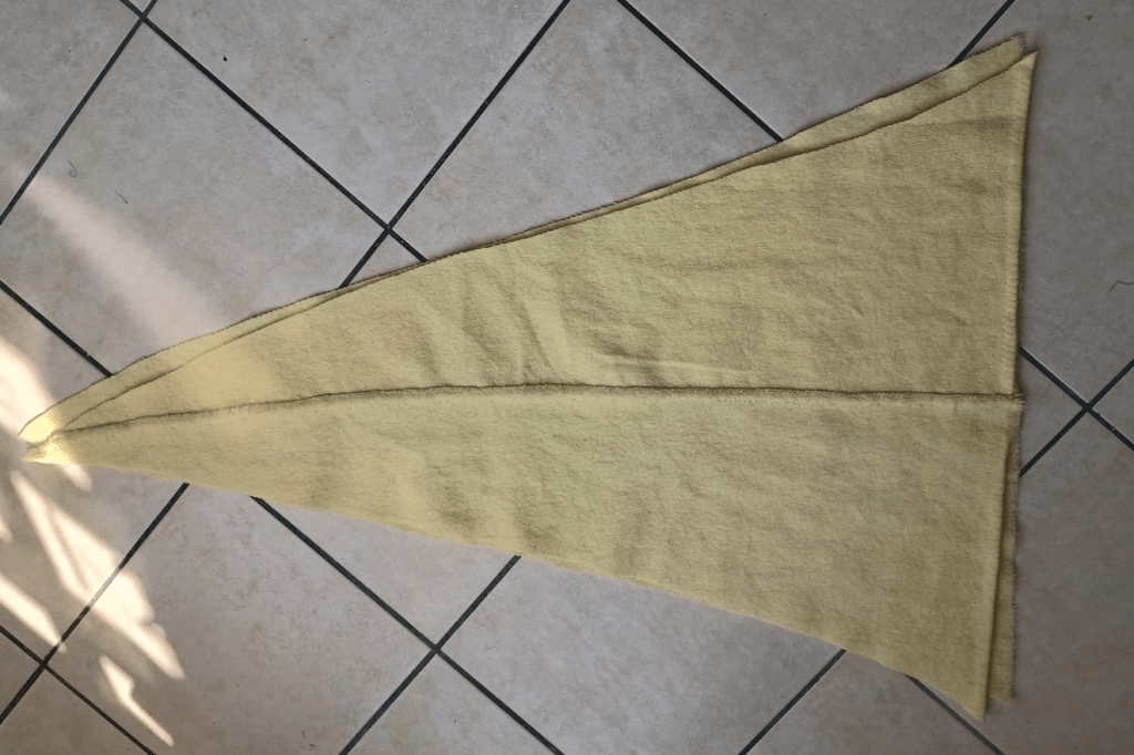 The first step is to make the ‘split’ gore into a whole one. Sewing together the two right angle seams. Once this is done this part can be treated as one whole piece.