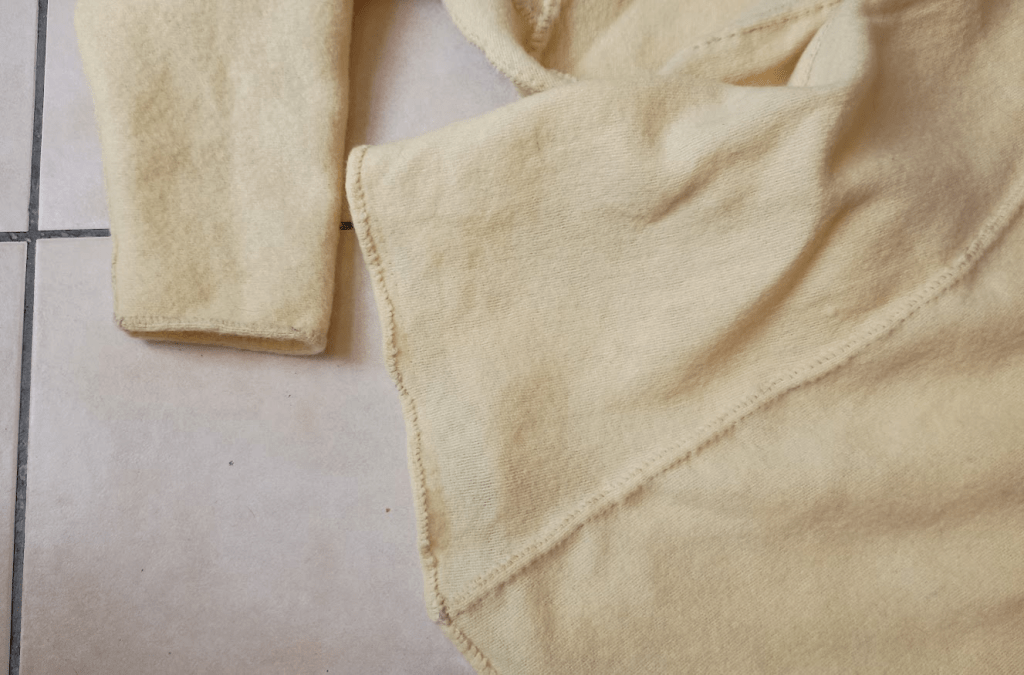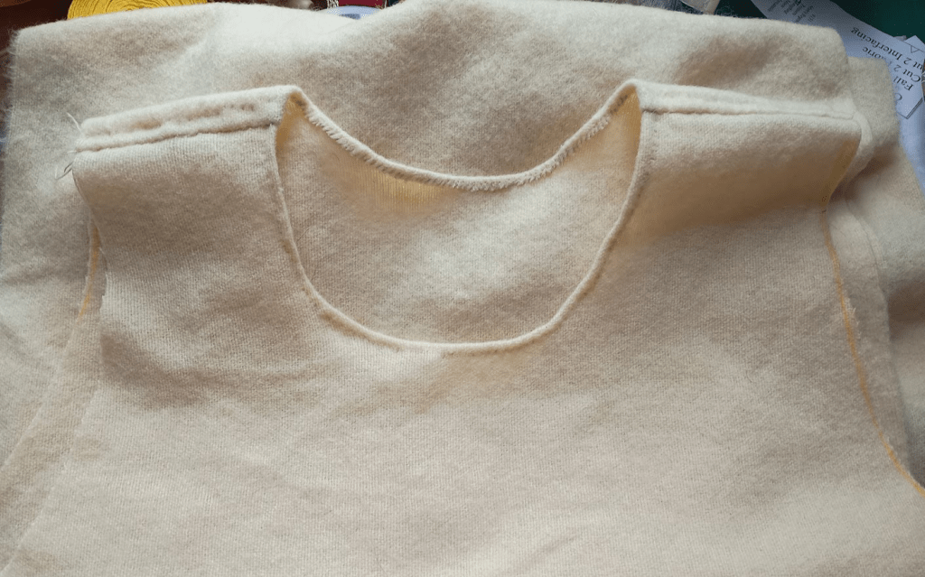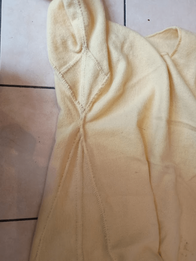 The edges are then all finished with a very basic whip stitch. As this wool is very prone to felting I haven’t bothered to double fold the hem and simply whipped the edge down. After a few wears and washes this should homogenise into the main fabric and be very sturdy.