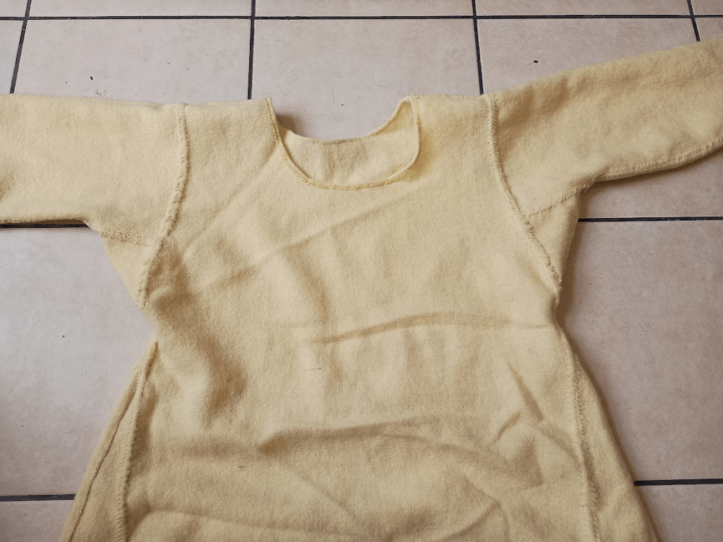 The two body parts are made into one, and as part of the felling process the neck hole is also hemmed.