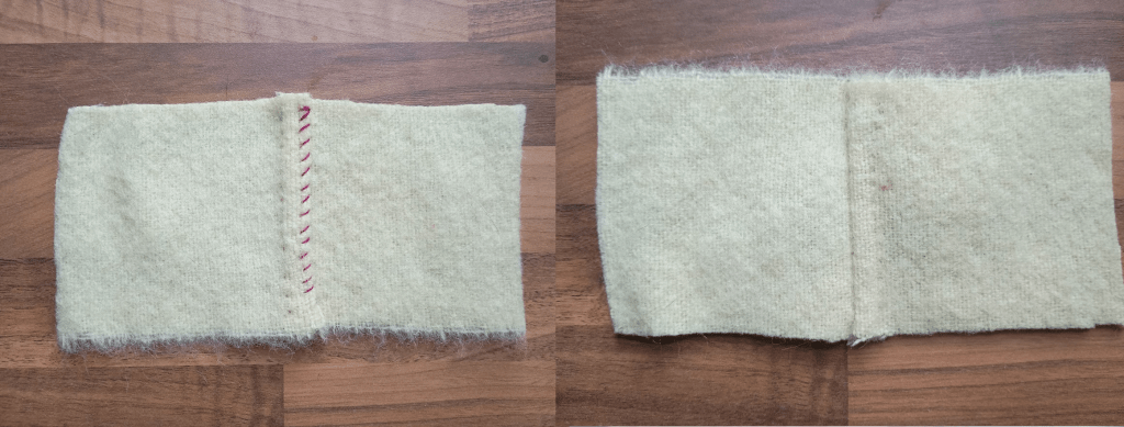 Once the running stitch is complete, open out the seam and flop the longer seam allowance over the shorter. Again here you can pin this in place.